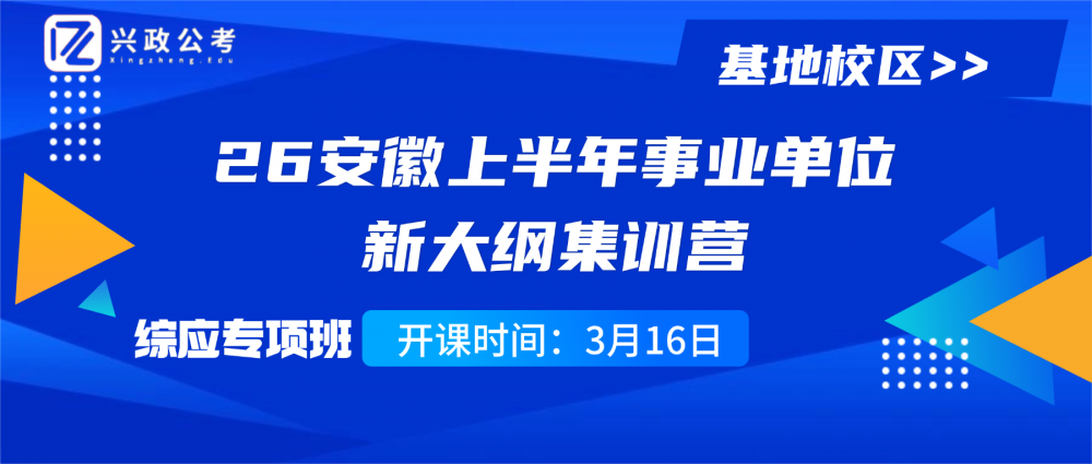 3月16日,兴政公考26安徽上半年事业单位新大纲集训营(基地校区)综应专项班重磅开课,紧扣安徽事业单位新大纲要求,精准匹配命题规律,帮你一举突破综应备考瓶颈!